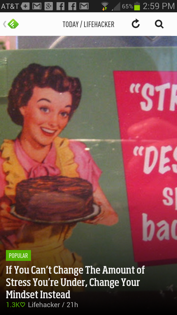 Using Feedly on my phone is proving to be an even better experience than viewing it on my computer. For this reason, reading Feedly becomes something I can do from anywhere. Because I can read just one article or the entire feed during any given session, it becomes a perfect option for filling spare minutes. I can read it while in line at the grocery store or waiting for an appointment.